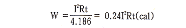 저항 R(Ohm)의 저항체에 전류 I(Ampere)를 t(Sec)간 연속으로 흐를 때 저항체에 발생하는 열량을 말하며 아래식으로 표시한다.
