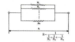 저항 R1, R2, R3, ……Rn(Ω)을 병열로 접속하면 합성저항 R은 다음 식으로 표시한다.